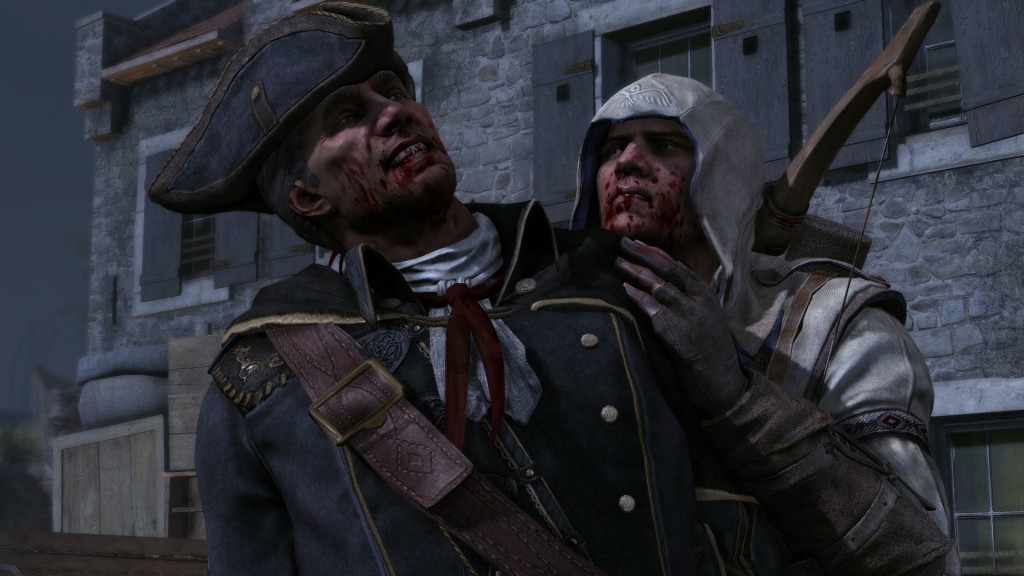 Porém, bem como seu amigo de infância, Connor arruma uma brecha e crava sua hidden blade em seu pai.